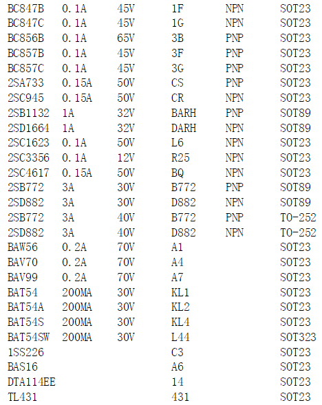 下面给大家看下贴片三极管的丝印含义: